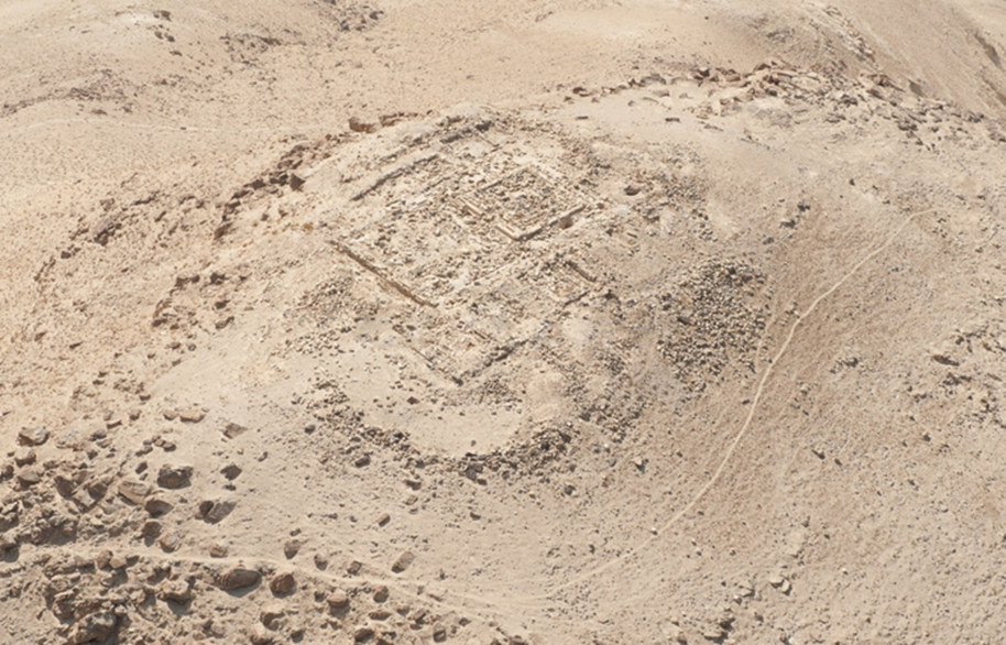 يحتوي الموقع على عدد كبير من البقايا المعمارية والتي تعود إلى فترات زمنية متعددة ( آدومي، روماني مبكر، بيزنطي وإسلامي متأخر) وقد كان نلسون جلوك أول من زار الموقع خلال مسوحاته عام 1933م ووصف معالمه وتحدث عن وجود معبد يعود للفترة النبطية.